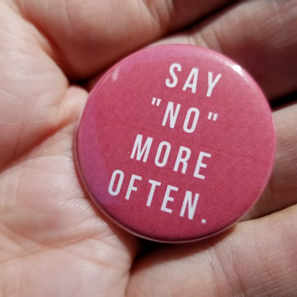 Say "No" More Often. 1.5 Inch. Round. Pin-Back button.
