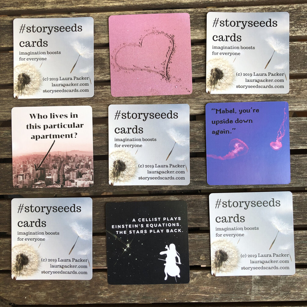Beautifully designed cards with images and words, just words, or just images, made to help you be more playful, creative, and imaginative. Each deck includes 50 #storyseeds cards, four cards with rules for play, and other uses. The possibilities are pretty much endless.