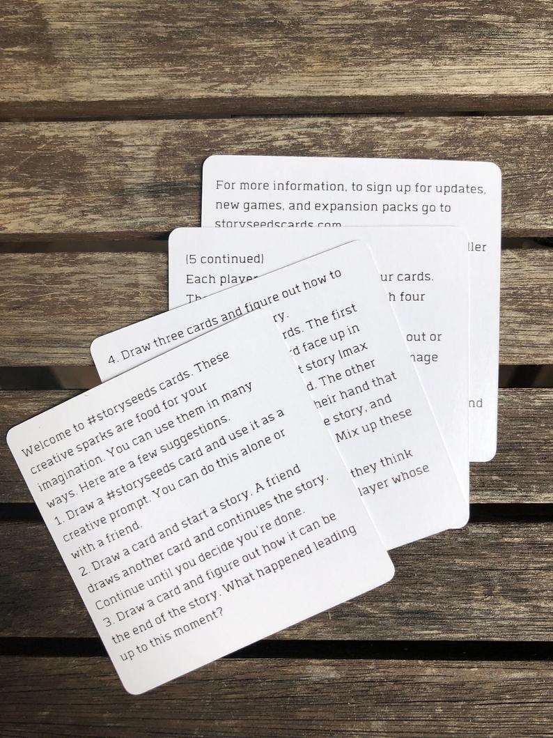 #storyseeds cards are creative sparks for everyone. Use the deck to spark creativity, discover new stories, or play games with friends. Each deck has 50 #storyseeds and four instructional cards.
